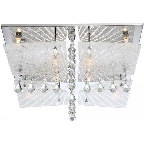 Назначение светильника: для комнаты, Стиль светильника: модерн, Тип: потолочная, Материал светильника: металл, стекло, Длина (мм): 450, Ширина: 450 мм, Высота: 180 мм, Количество ламп: 8 шт., Тип лампы: галогенная, Мощность: 33 Вт, Патрон: G9, Цвет арматуры: серебристый